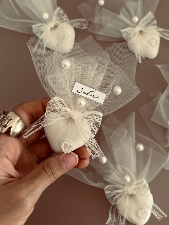 ترکیبی که هر بینندهای را سر ذوق میآورد. اگر میخواهید گیفت عروسیتان همرده با اکسسوریهای لوکس باشد، این مدل قلبی و مرواریدی بهترین انتخاب است.