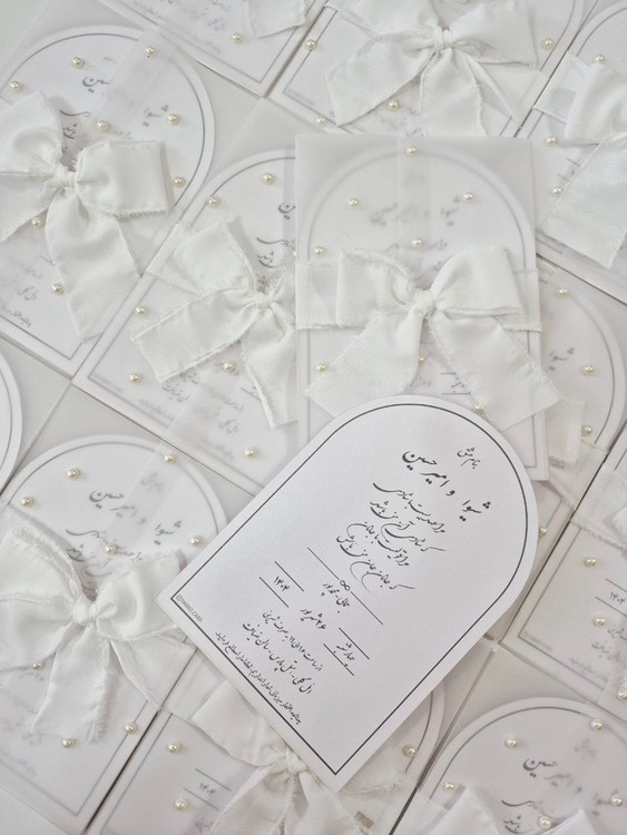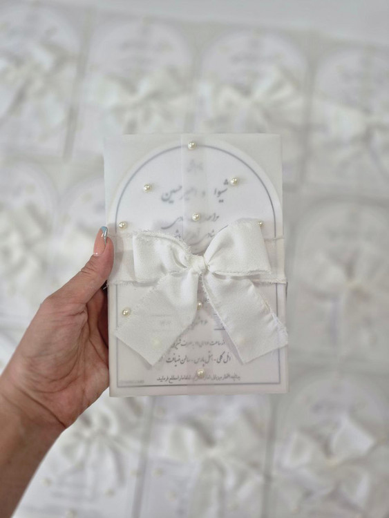 اقلام همراه این محصول شامل روبان، مروارید به تعداد کافی، ورقه ی کالک و لای چاپی میباشد.