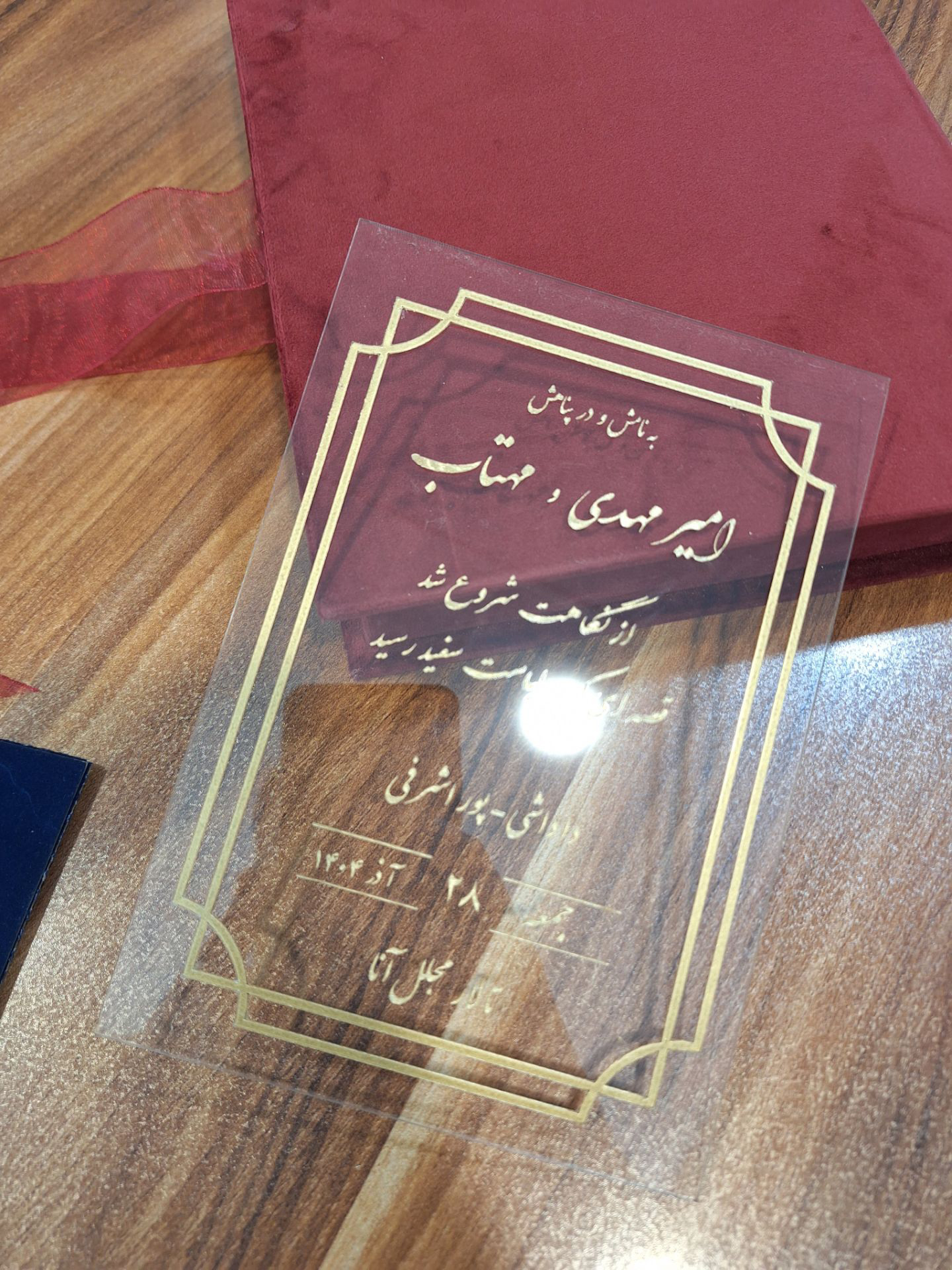 این کارت دعوت عروسی صرفا برای عکاسی و پلکسی شیشه ای داخل کارت می باشد برای کسانی که دنبال یک کارت لاکچری و در عین حال ساده می گردن