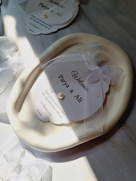 کارت حوش آمدگویی لوکس با طرح حریر و مروارید.