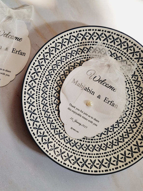 این کارت زیبا با بافت لطیف حریر و تزئین مروارید درخشان انتخابی منحصر به فرد برای خوش آمدگویی گرم و منحصر به فرد است.