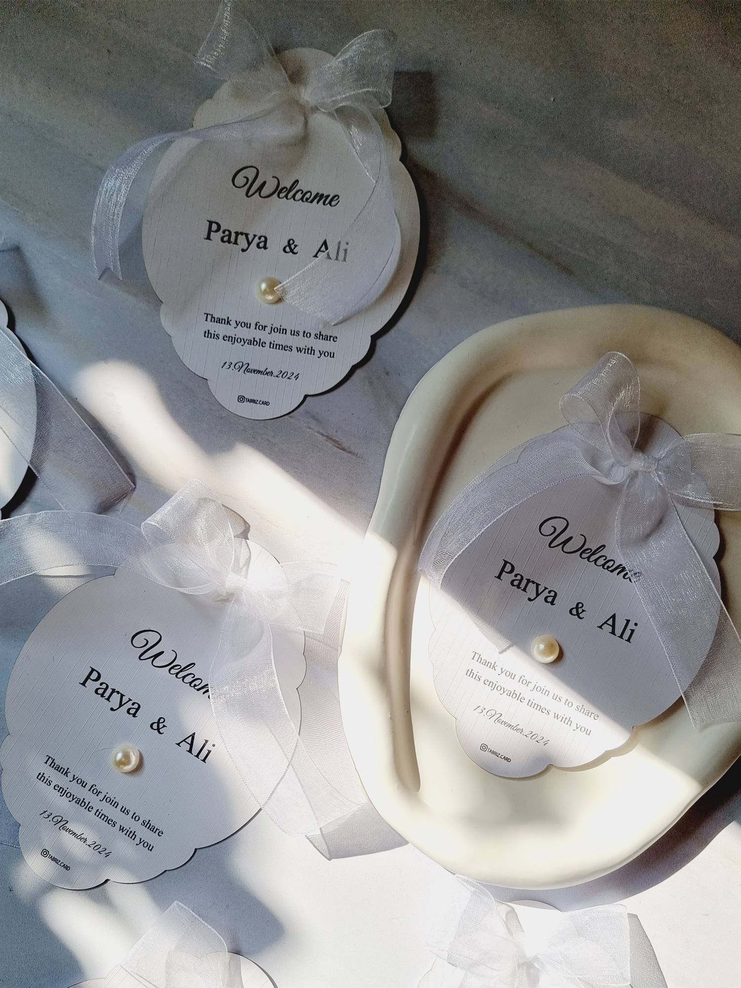 کارت حوش آمدگویی لوکس با طرح حریر و مروارید.